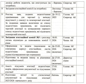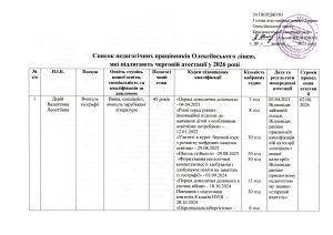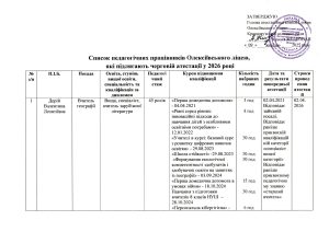 Список працівників Олексіївського ліцею, які підлягають черговій атестації у 2026 році