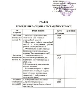 ГРАФІК ПРОВЕДЕННЯ ЗАСІДАНЬ АТЕСТАЦІЙНОЇ КОМІСІЇ